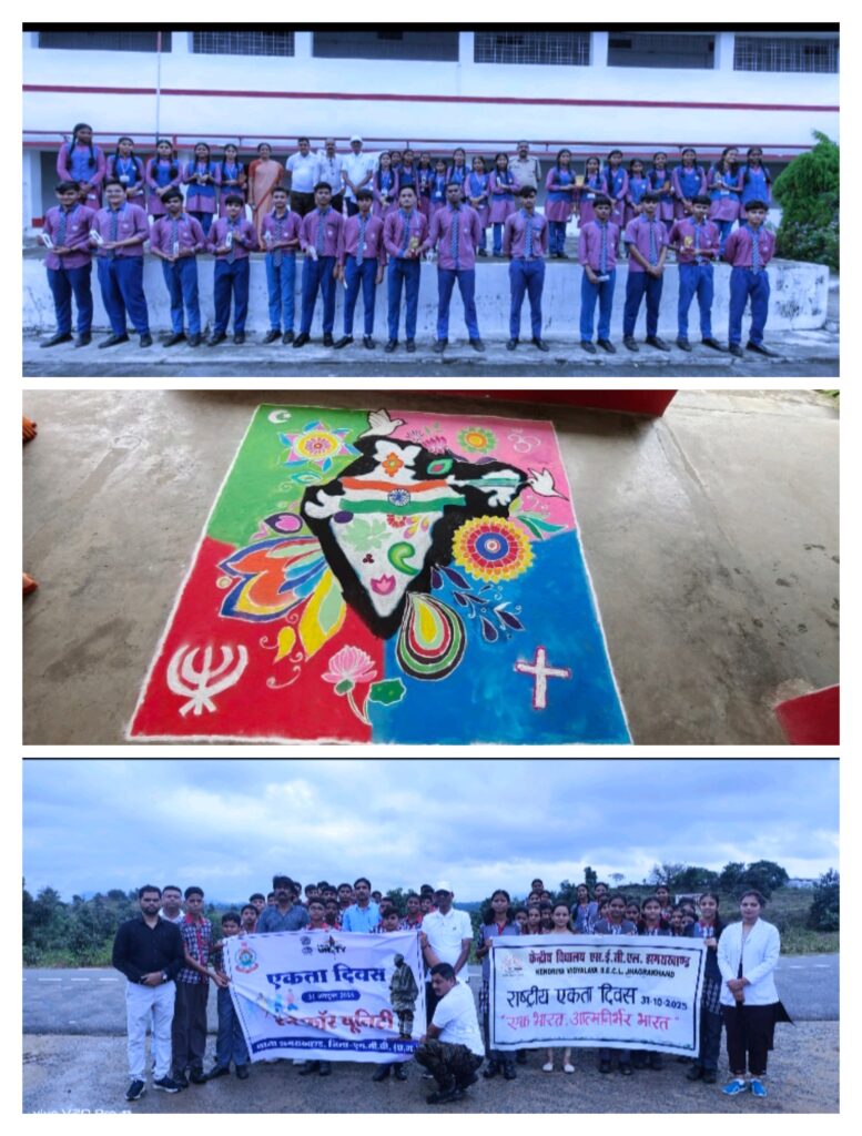 दिनांक 31/10/25 को राष्ट्रीय एकता दिवस समारोह के अंतर्गत देश में एकता और अखंडता को बनाए रखने के लिए ( रन -फार- यूनिटी) कार्यक्रम पुलिस महानिरीक्षक सरगुजा रेंज सरगुजा दीपक कुमार झा,एवं पुलिस अधीक्षक एमसीबी रत्ना सिंह,के निर्देशानुसार एवं पुलिस अनुविभागीय अधिकारी मनेंद्रगढ़ ए. टोप्पो के निर्देशन पर थाना प्रभारी झगराखाड आर.एन. गुप्ता एवं चौकी प्रभारी खोगापानी राकेश शर्मा,चौकी प्रभारी कोड़ा स.उ.नि किशन चौहान सहित संयुक्त रूप से हमराह -स्टाफ द्वारा स्वच्छता अभियान के तहत् थाना झगराखाड,चौकी खोगापानी,तथा चौकी कोड़ा की साफ – सफाई कराई गई। तत्पश्चात थाना क्षेत्र के सेन्ट्रल स्कूल झगराखाड के बच्चों का मैराथन दौड़ कार्यक्रम कराने लगभग 100 बच्चे चौकी खोगापानी तक्षशीला स्कूल के करीब 80 बच्चे, एवं चौकी कोड़ा के 40 बच्चों को मैराथन दौड़ कराया गया वहीं विजेताओं को पुरस्कृत भी किया गया इसके साथ स्कूल के छात्रों को राष्ट्रीय एकता दिवस का शपथ भी दिलाई गई । उक्त तारतम्य में वृक्षारोपण कराये जाने के परिपालन में थाना झगराखाड परिसर एवं चौकी कोड़ा परिसर में विभिन्न फलदार वृक्षों का रोपण कराया गया तत्पश्चात सांस्कृतिक कार्यक्रम एवं खेल‌ प्रतियोगिता कराए जाने के परिपालन में सेट जोसेफ स्कूल में रंगोली प्रतियोगिता का आयोजन कराया गया जिसमें 28 बच्चियां शामिल हुई।वहीं बालीवाल प्रतियोगिता में 4 टीमों में 28 लड़के और बेटमिटन के 6 टीमों में 12 बच्चियां शामिल हुई।जिसमें विजेता टीम को शील्ड एवं पेन तथा उक्त कार्यक्रम में भाग लेने वाले बच्चों को सांत्वना पुरूस्कार प्रदान कर सम्मानित किया गया उक्त जागरूक कार्यक्रम अंतर्गत सेट जोसेफ स्कूल के स्कूली छात्र – छात्राओं सहित लगभग 700 बच्चे उपस्थित रहे जिन्हें शपथ दिलाकर अलग से सायबर क्राईम संबंध में समझाइश भी दिया गया