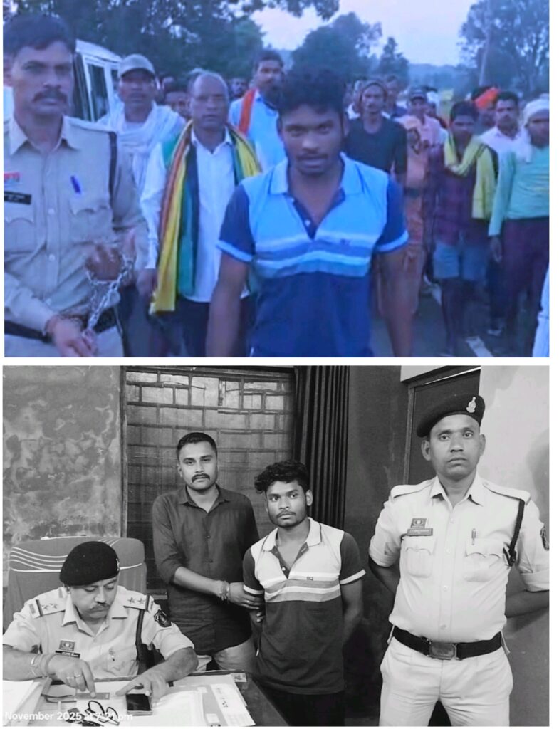 पहले शंका/संदेह और फिर पुलिस की गिरफ्तारी, फिर अंततः हुआ खुलासा /-उक्त कलयुगी पोते का निकाला गया पैदल मार्च/ जूलूस—???—- देर शाम थाना-जनकपुर के तेजतर्रार प्रभारी ओम प्रकाश दुबे के नेतृत्व में वरिष्ठ -अधिकारियों के दिशा-निर्देश पर उक्त आरोपी का थाना – क्षेत्र में जूलूस निकालकर जनता में यह संदेश देने का प्रयास किया गया कि- आरोपी – कोई भी हो ,जो भी कानून को अपने हाथ में लेगा, उसको उसी की भाषा में कानून का शिकंजा कस कठोर और सख्त कार्यवाही किया जाएगा ।साथ ही उक्त पैदल मार्च दौरान (नारे भी उक्त आरोपी से लगवाये गये ( हत्या करना पाप है, पुलिस हमारी बाप है।जिस दौरान काफी संख्या में ग्रामीण उपस्थित रहे।