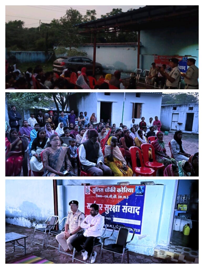 बता दें कि -चिरमिरी- वार्ड क्रमांक 34 के पुराना गोदरीपारा क्षेत्र में विशेष जन -जागरूकता कार्यक्रम का आयोजन किया गया उक्त कार्यक्रम में चिरमिरी थाना प्रभारी श्री विजय सिंह द्वारा स्थानीय नागरिकों, स्कूल के छात्र-छात्राओं, कॉलेज विद्यार्थियों, महिलाओं एवं पुरुषों को साइबर जागरूकता संवाद, यातायात सुरक्षा, महिलाओं एवं बच्चों के विरुद्ध अपराध की रोकथाम तथा नशा मुक्त जैसे महत्वपूर्ण विषयों पर जानकारी दी गई।