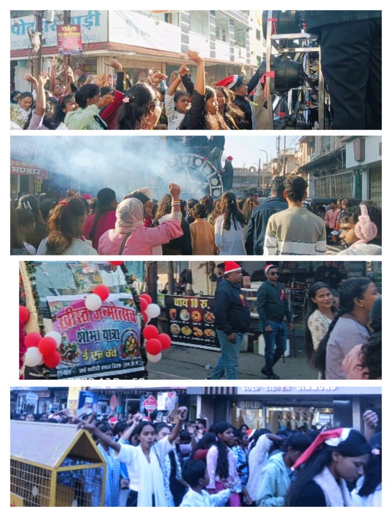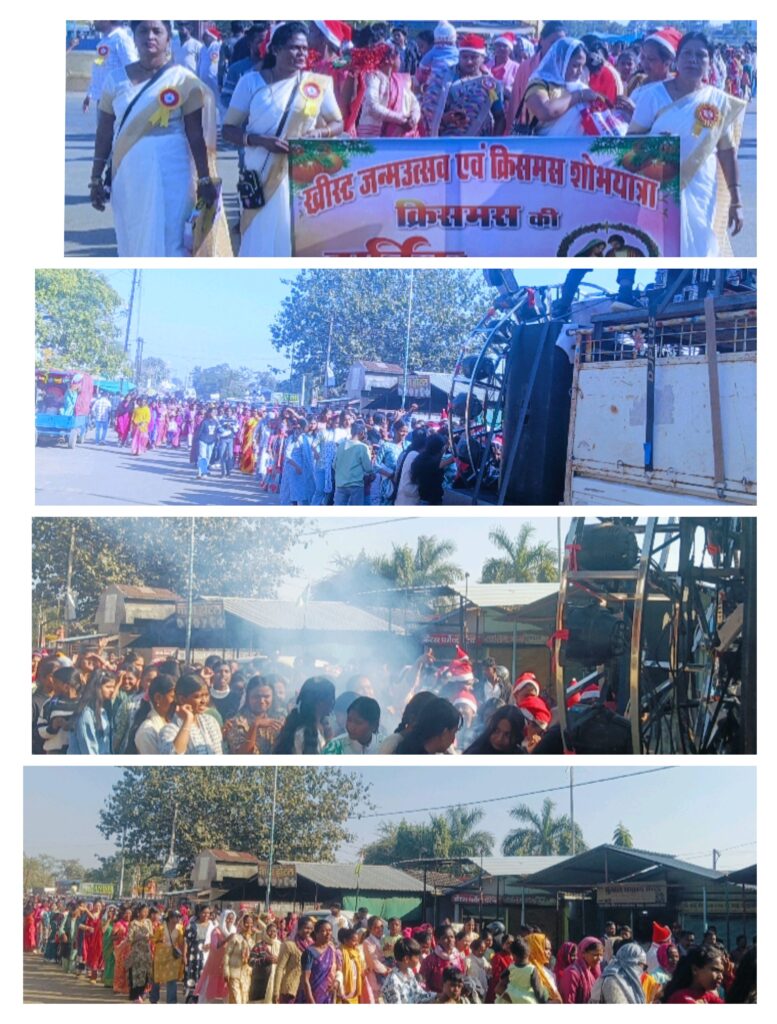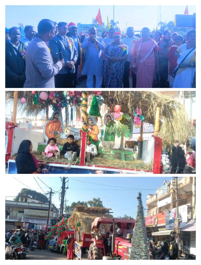 मनेंद्रगढ़- हम आपको बता दें कि गत वर्ष की भांति मनेंद्रगढ़ जिला एम.सी.बी.(छ.ग.) के मसीहियों ने शांतिपूर्ण तरीके से नाचते गाते शोभा यात्रा निकालकर जगत के उद्धारकर्ता प्रभु यीशु मसीह के जन्म दिन का समस्त देश वासियों को प्रेम का संदेश देकर क्रिसमस की बधाई दी । उक्त शोभायात्रा में तमाम चर्चों के पासवानों ने भी भाग लिया और उन्होंने भी प्रभु यीशु मसीह के प्रेम को प्रगट कर आपस में भाई- चारे का संदेश देकर प्रभु यीशु मसीह के विषय में जानकारी देकर बताया की प्रभु यीशु मसीह सारे जगत के लोगों का उद्धार करने मानव तन धारण कर इस दुनिया में जन्म लिये थे।वो किसी विशेष जाति वर्ग के लिए नही यीशु मसीह ने कोई भेदभाव नही किया उन्होंने किसी को छोटा बडा़ उंच, नीच नही समझा सभी मानव जाति को एक समान रूप से देखा और समस्त मानव जाति को आपस में एक दुसरे से प्रेम करने की शिक्षा दी ।